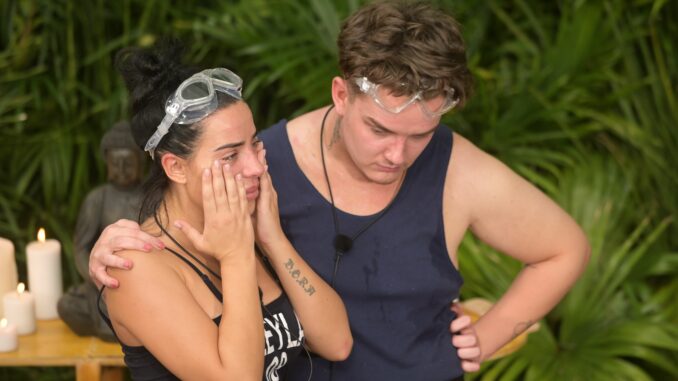 Ranger befreien die schluchzende Leyla, auch Sonja Zietlow kommt tröstend dazu. Null Sterne. Leyla entschuldigt sich bei Tim, der sie beruhigt und in den Arm nimmt: „Dir muss gar nichts leidtun. Du bist nicht mehr in der Prüfung. Atme ein und atme aus. Niemand ist dir böse!“